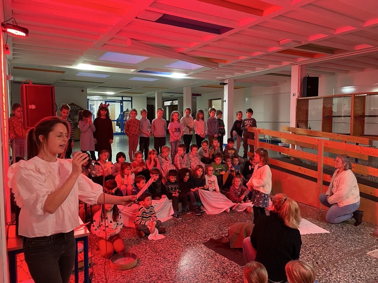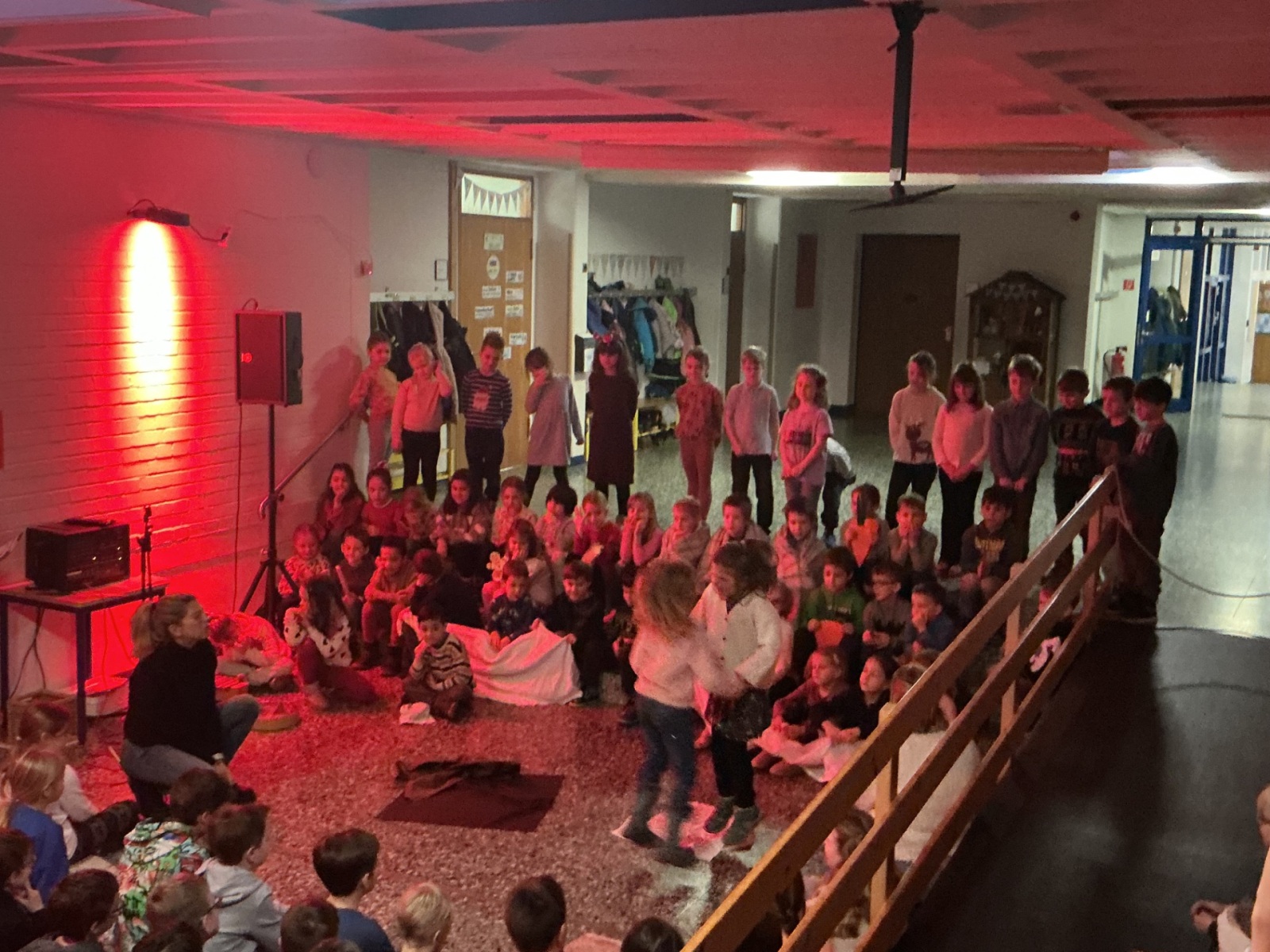 Am dritten Advent gab es ein kleines Spiel der ersten Klassen. Sie erzählten vom Eichhörnchen, welches im Maulwurf einen freund fand, nachdem es vergeblich an einige Türen geklopft hatte. (Fotos: A-K. Meyer, P. Erdmann)